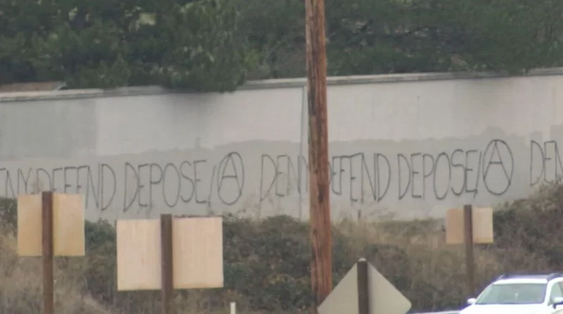 Medford, OR — The Medford Police Department is investigating a disturbing act of graffiti that appears to be connected to the recent murder of United Healthcare CEO Brian Thompson. The words “Deny, Defend, Depose” accompanied by the anarchist symbol were found scrawled on a sound barrier wall in South Medford, a high-visibility location along Interstate 5.